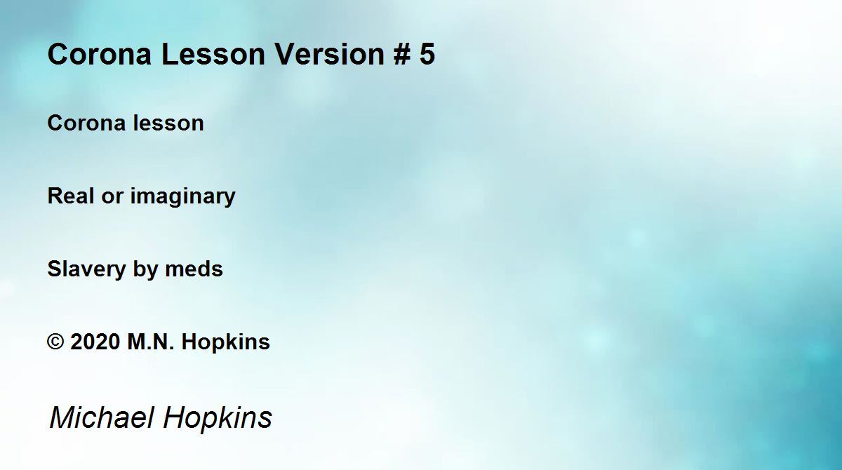 Corona Lesson Version # 5 Poem by Michael Hopkins