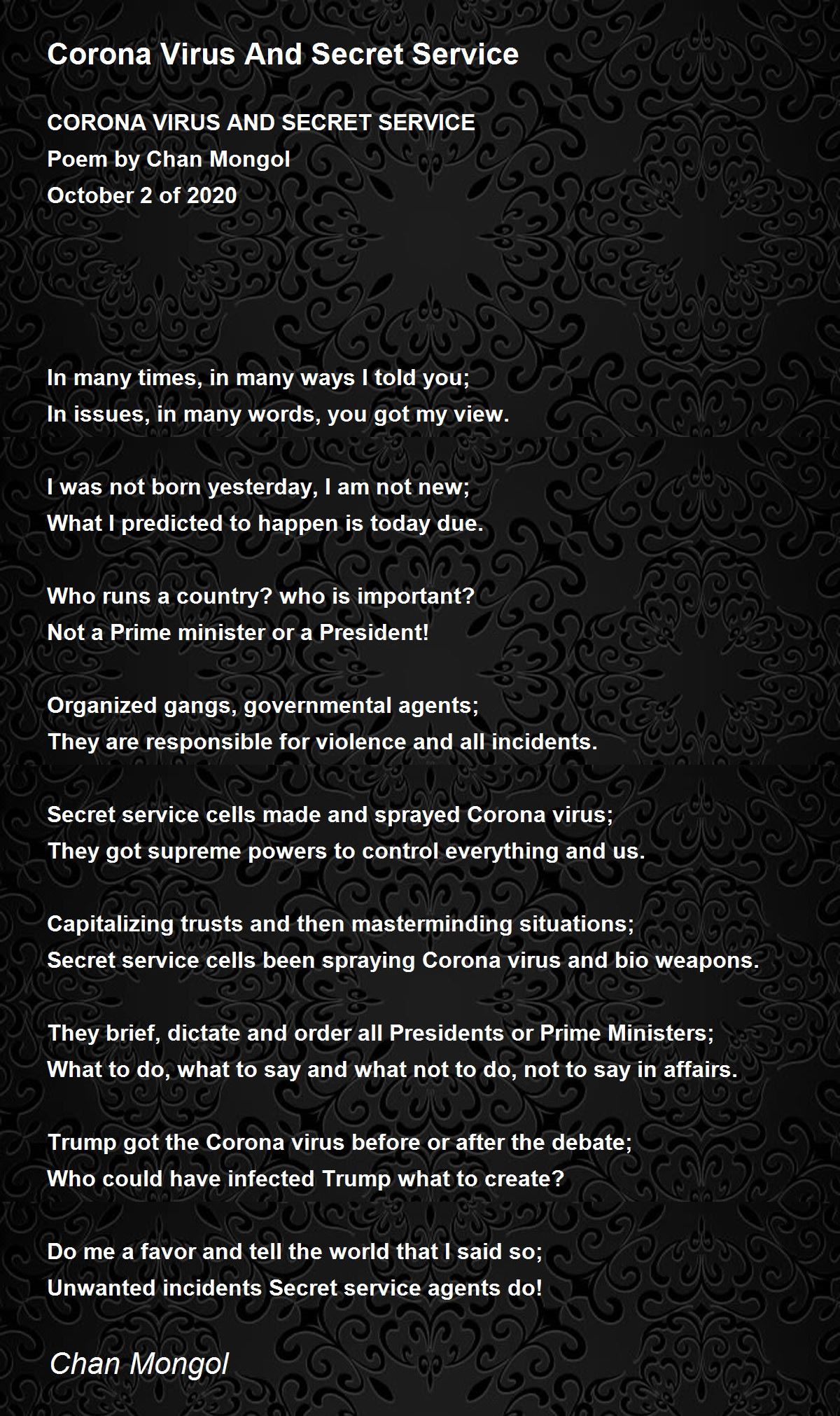 CORONA VIRUS AND SECRET SERVICE
