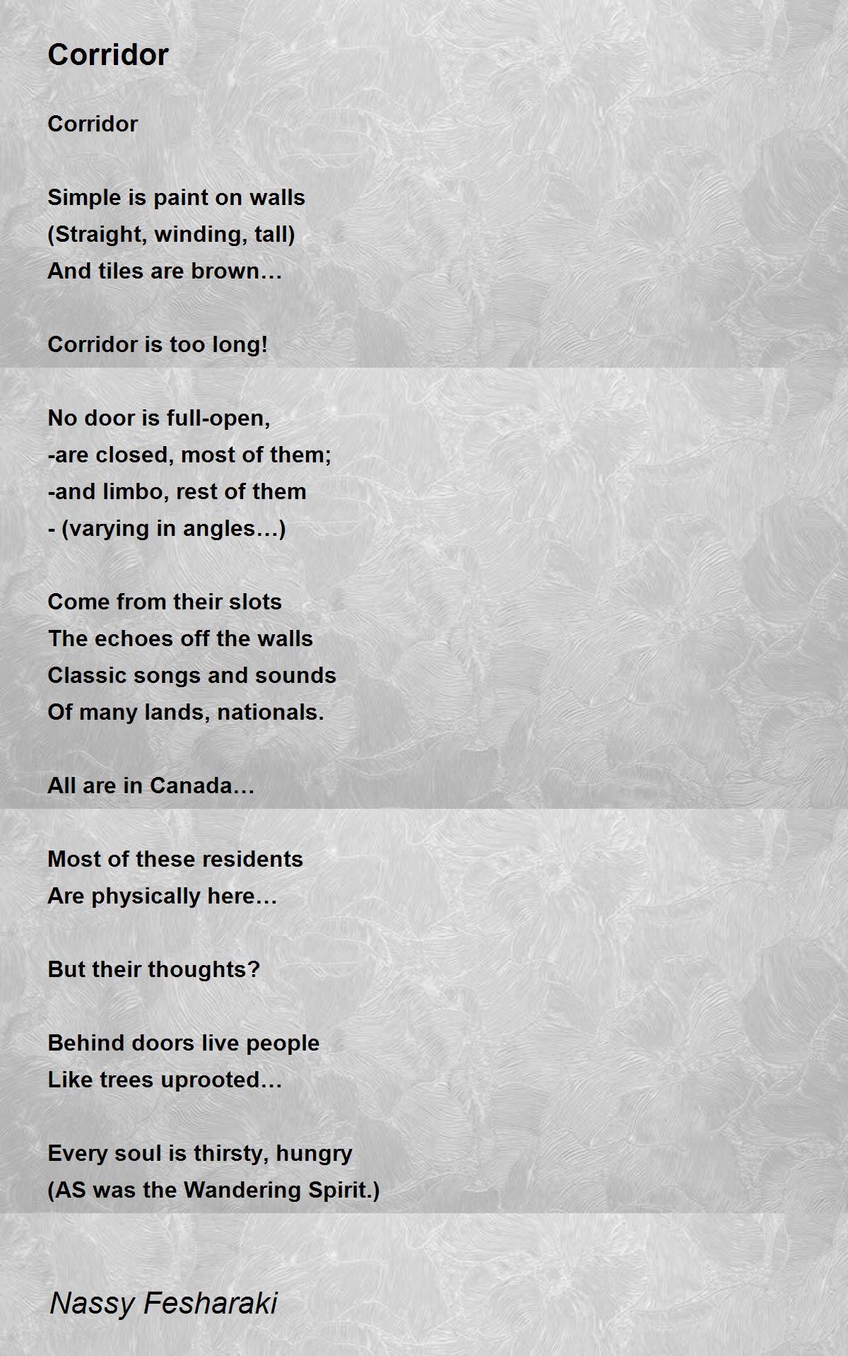 Simple is painted on walls and corridor is imagined. This poem is very thought provoking and excellently penned.