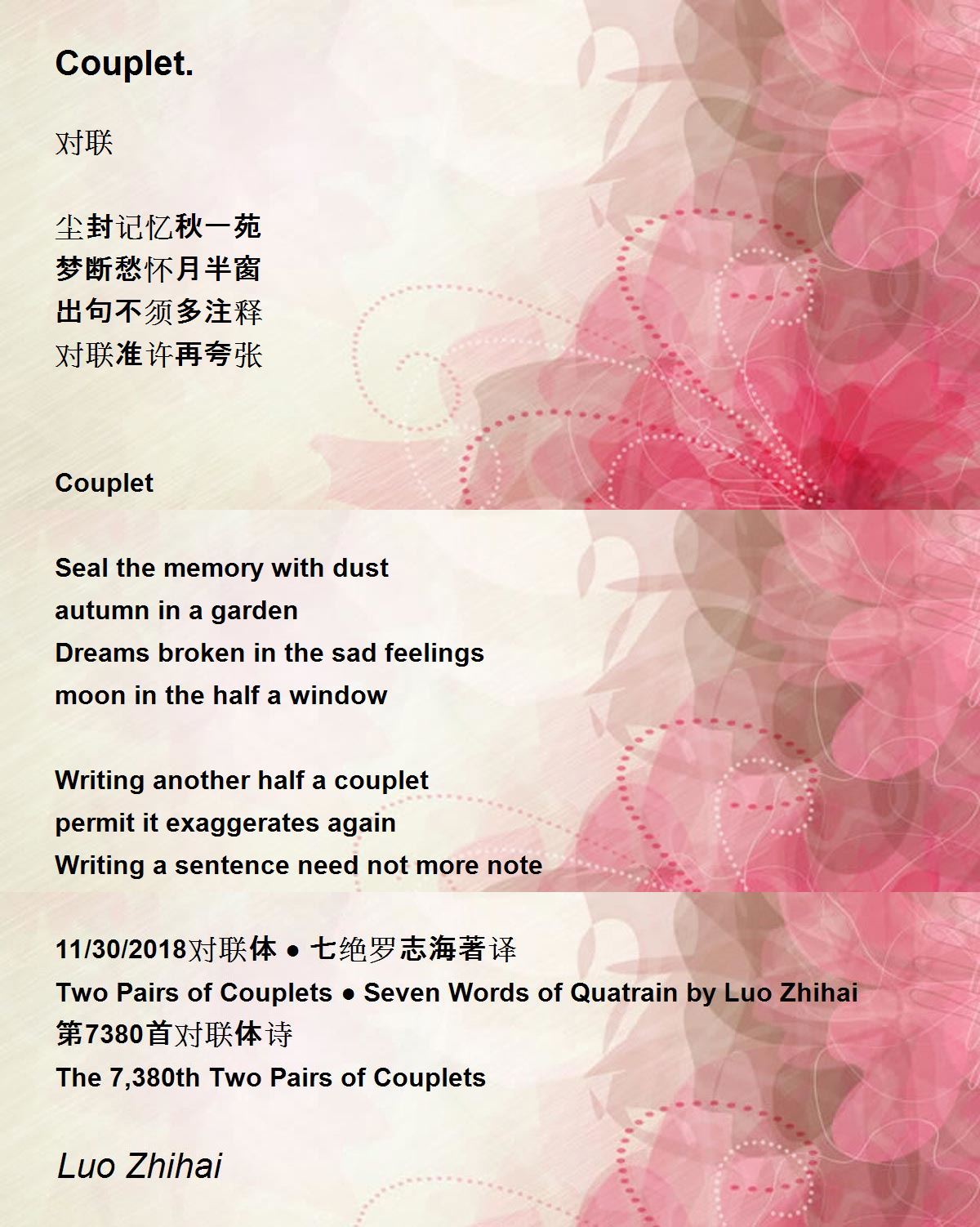 Two Pairs of Couplets ● Seven Words of Quatrain by Luo Zhihai