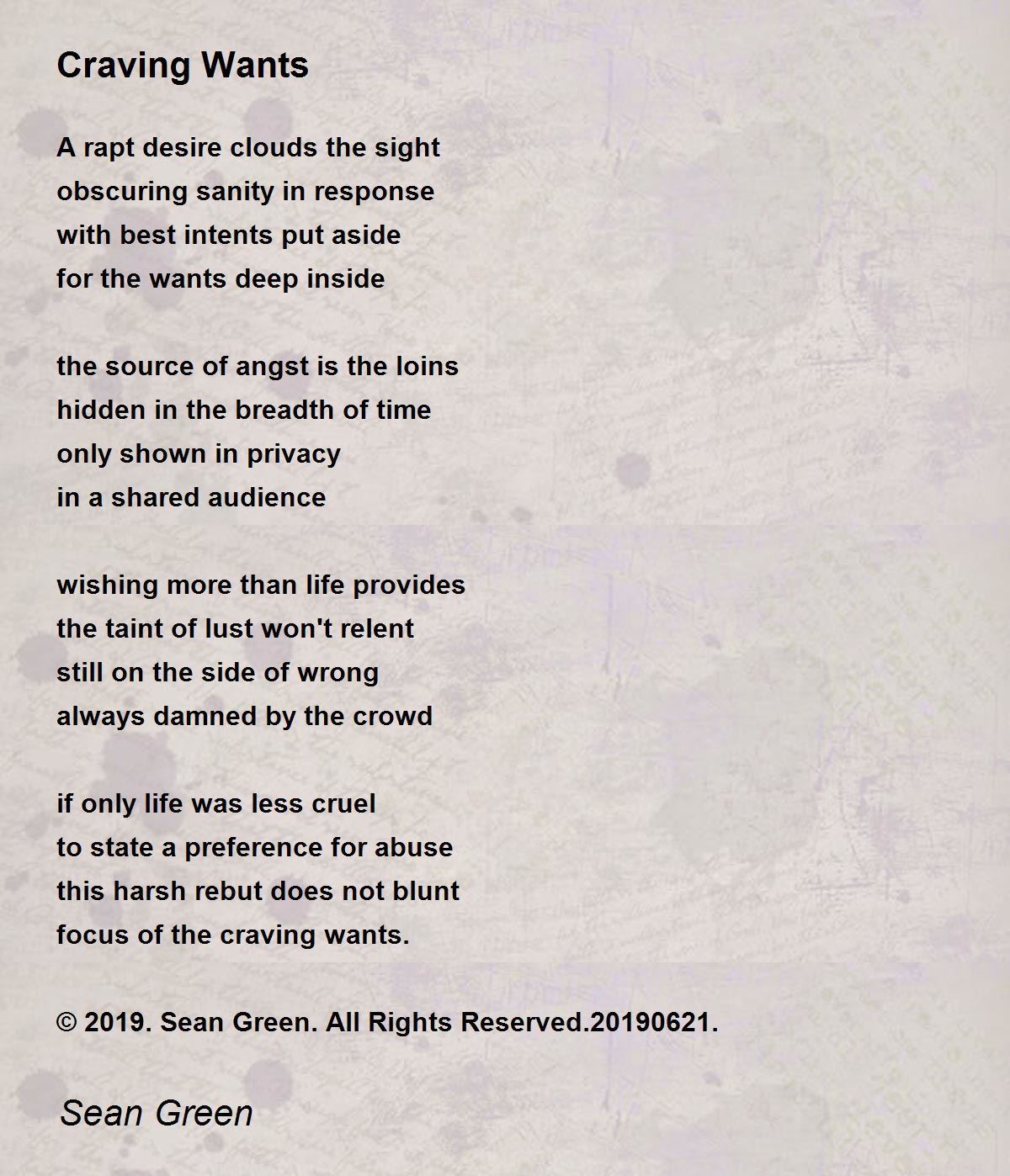 the taint of lust won't relent