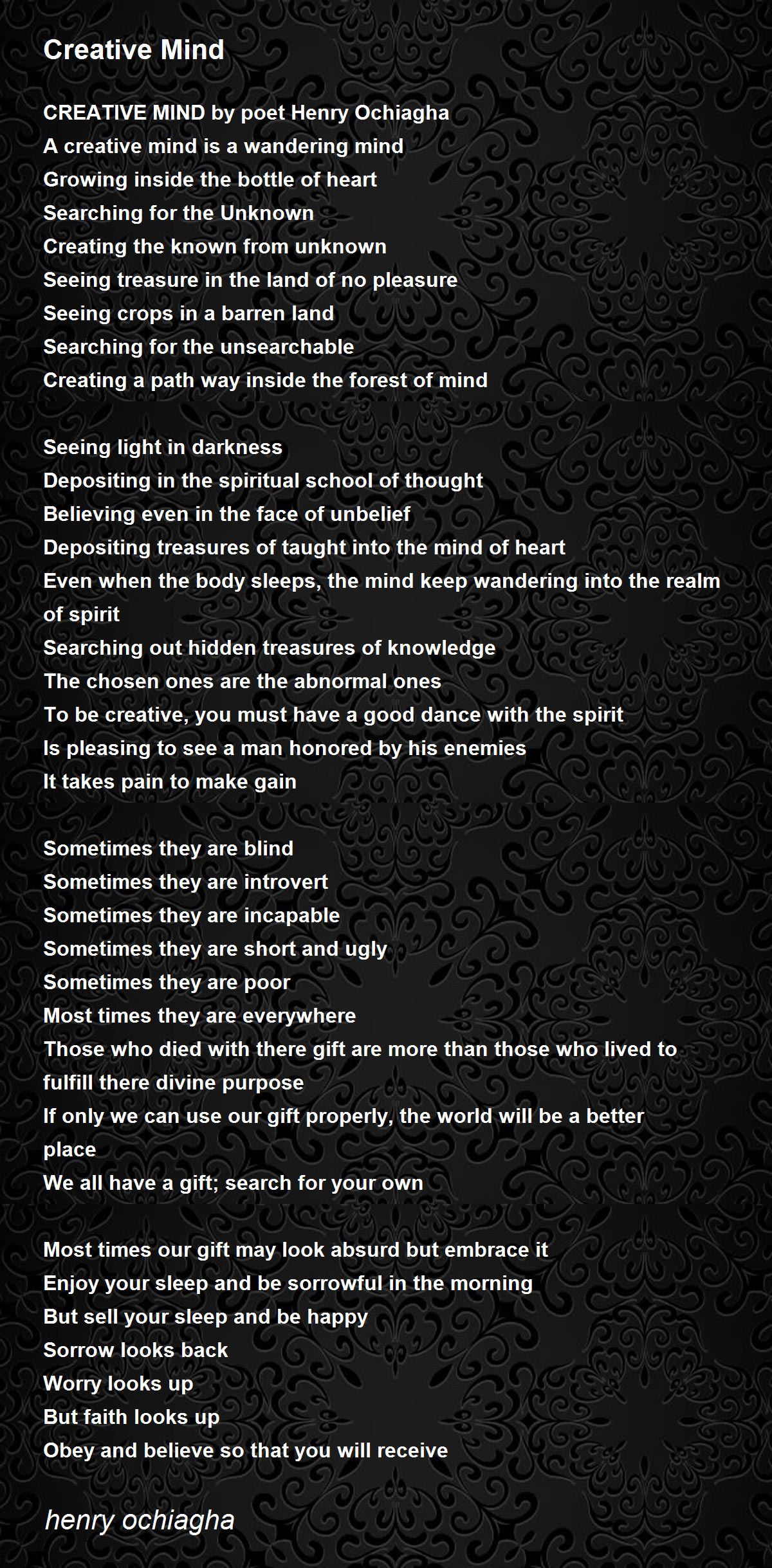 CREATIVE MIND by poet Henry Ochiagha