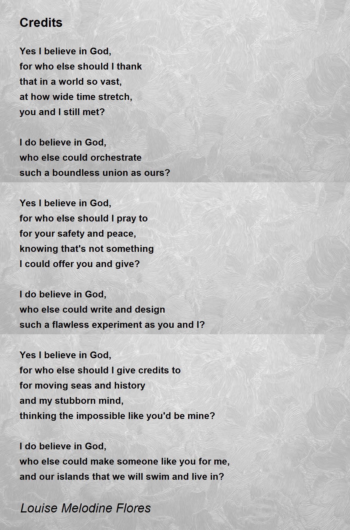 I do believe in God,