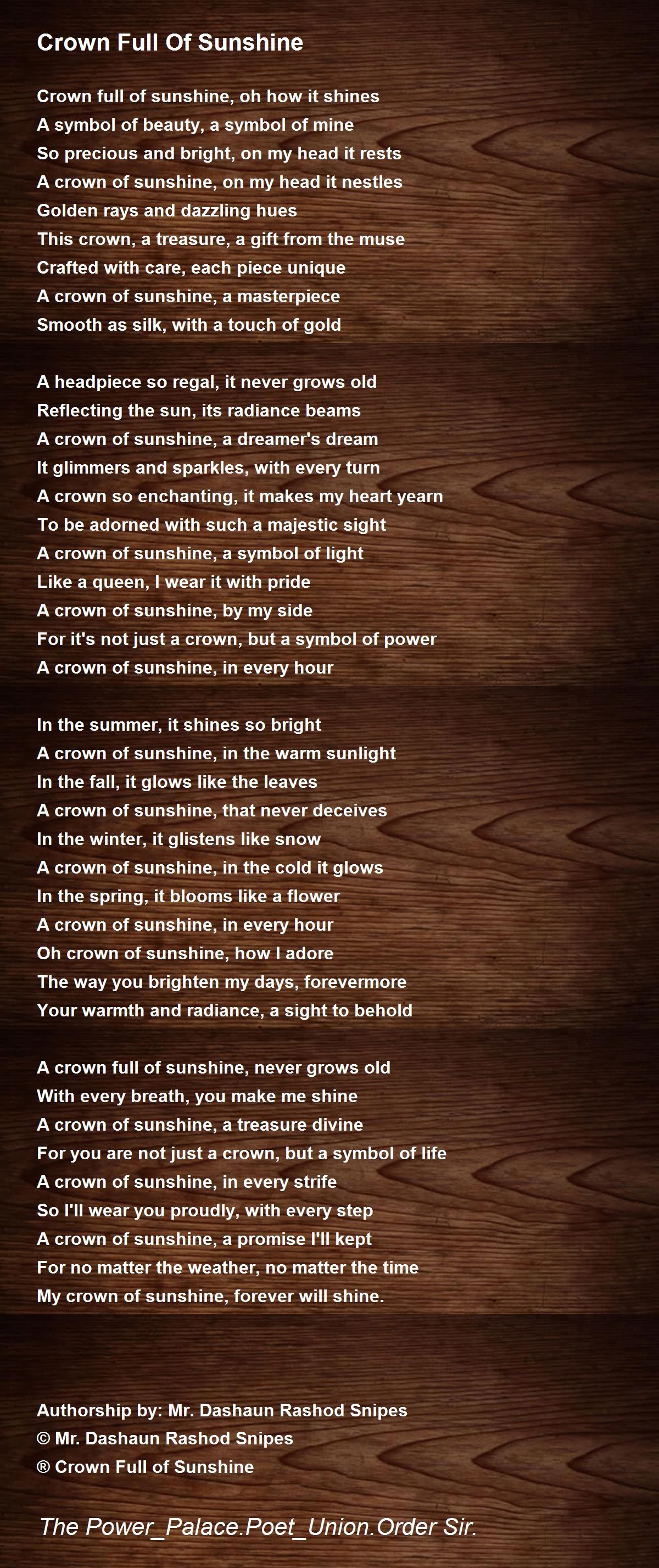 My crown of sunshine, forever will shine.