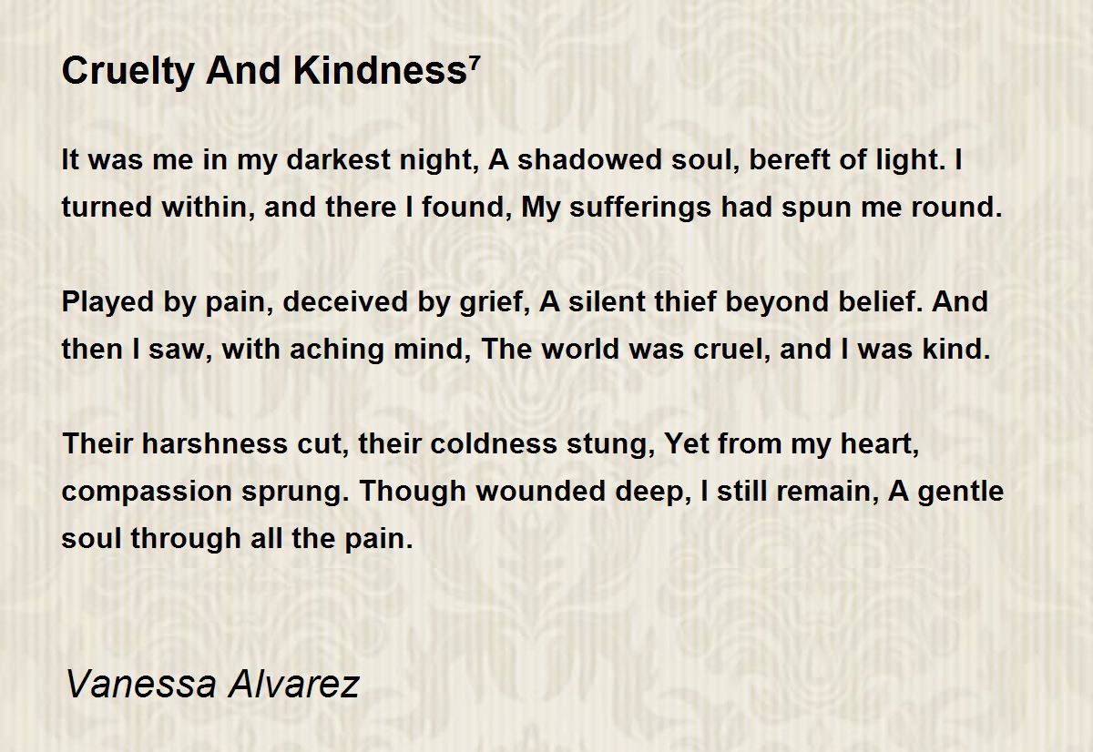 Played by pain, deceived by grief, A silent thief beyond belief.And then I saw, with aching mind, The world was cruel, and I was kind.