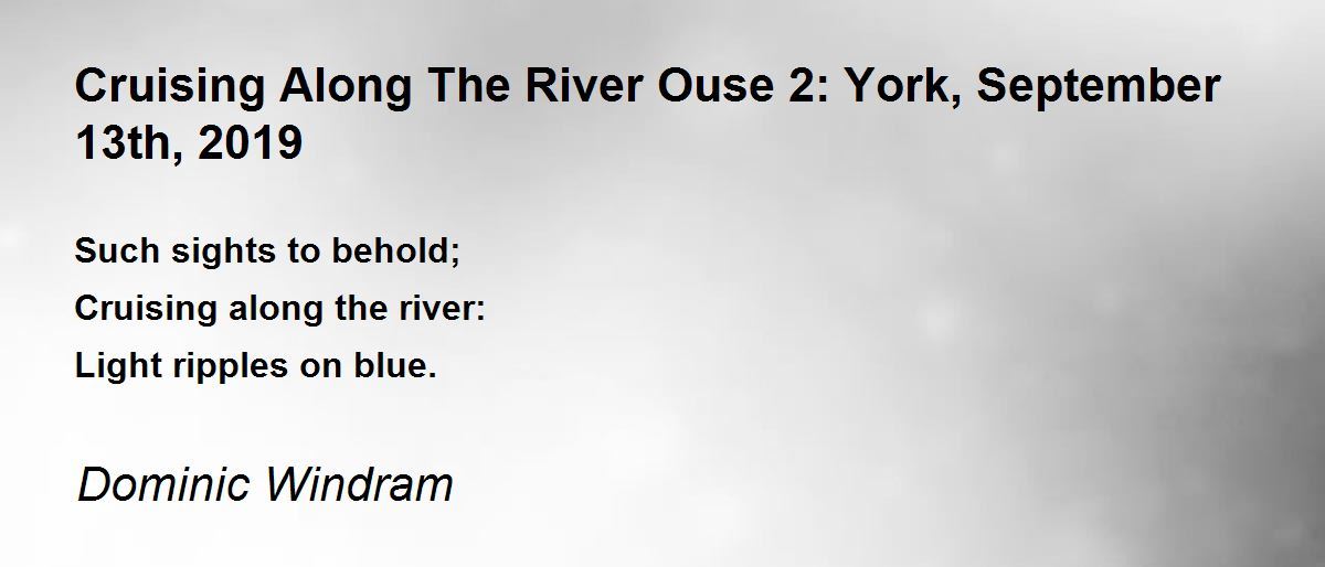 Such sights to behold; Cruising along the river: Light ripples on blue.