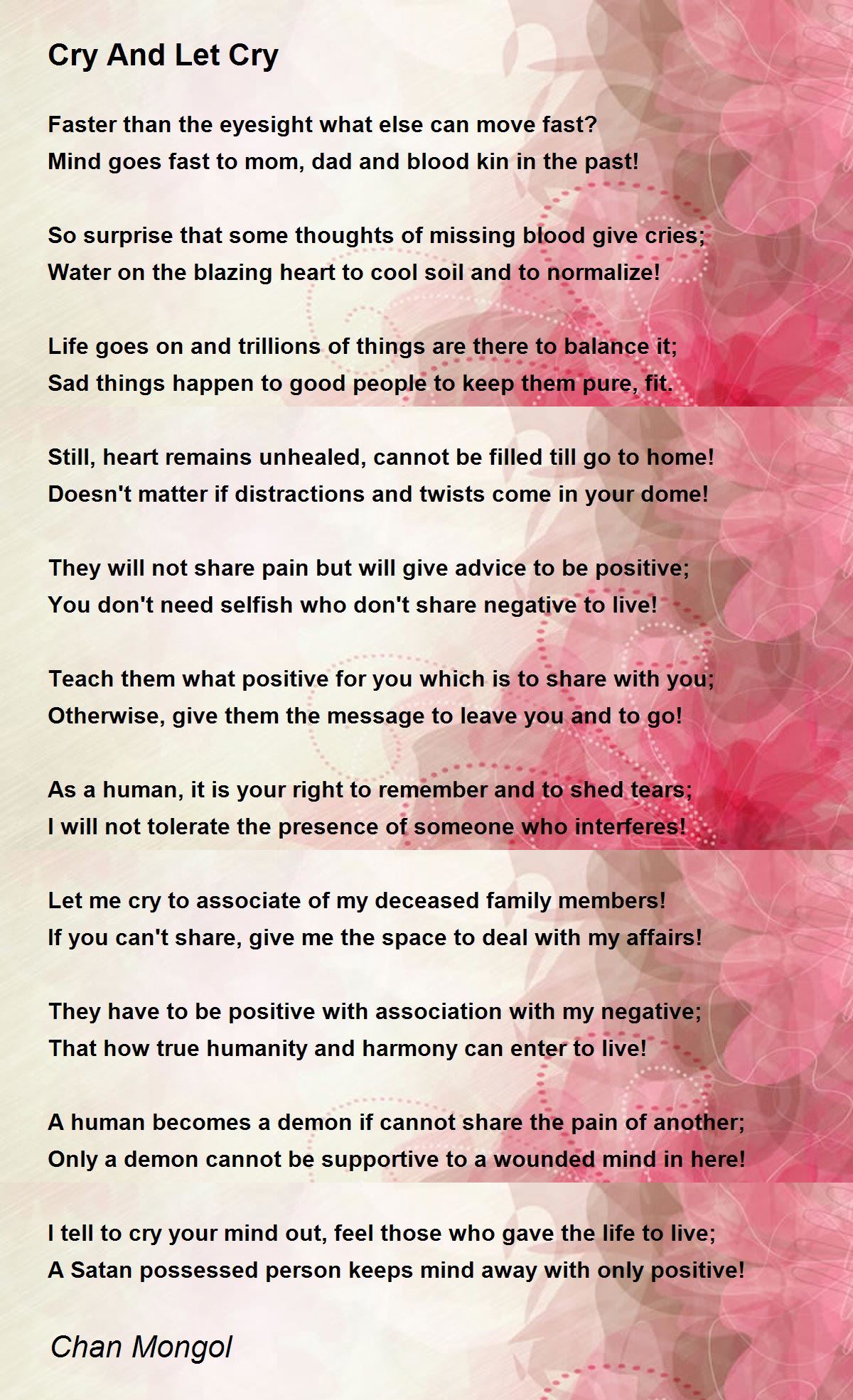I tell to cry your mind out, feel those who gave the life to live;
