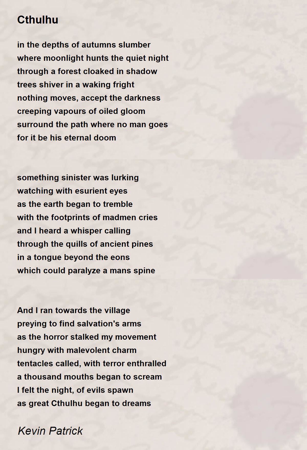 No idea who Cthulhu is (I'll do some research) , but I like this scary poem. Happy Halloween!