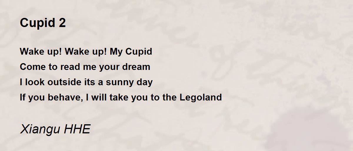 Wake up! Wake up! My Cupid Come to read me your dream I look outside its a sunny day If you behave, I will take you to the Legoland