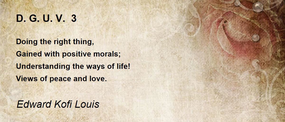 Doing the right thing, Gained with positive morals; Understanding the ways of life! Views of peace and love.