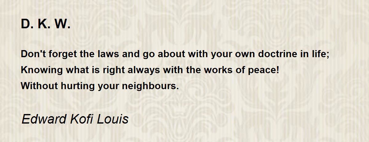 Don't forget the laws and go about with your own doctrine in life;