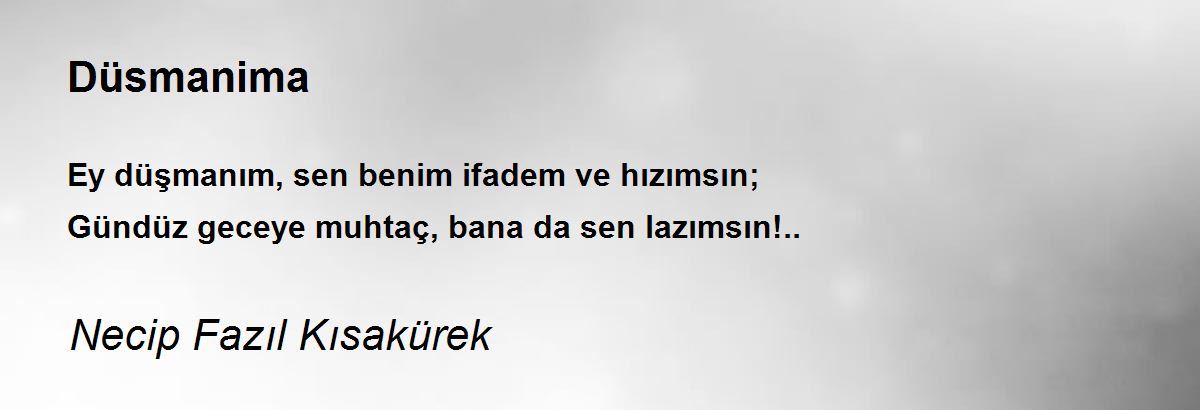 Ey düşmanım, sen benim ifadem ve hızımsın; Gündüz geceye muhtaç, bana da sen lazımsın!..