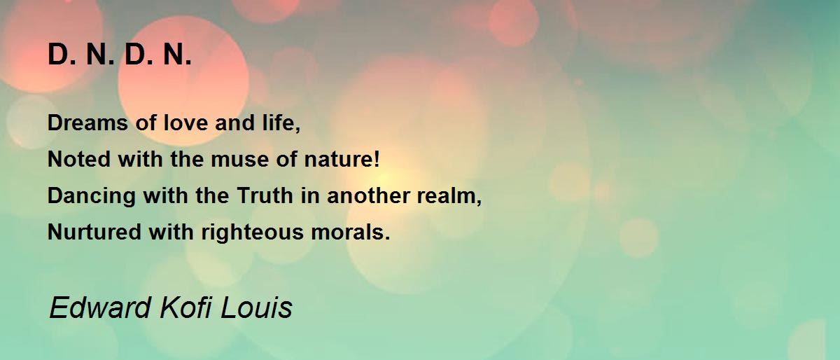 Dreams of love and life, Noted with the muse of nature! Dancing with the Truth in another realm, Nurtured with righteous morals.