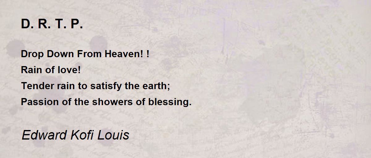 Drop Down From Heaven! ! Rain of love! Tender rain to satisfy the earth; Passion of the showers of blessing.
