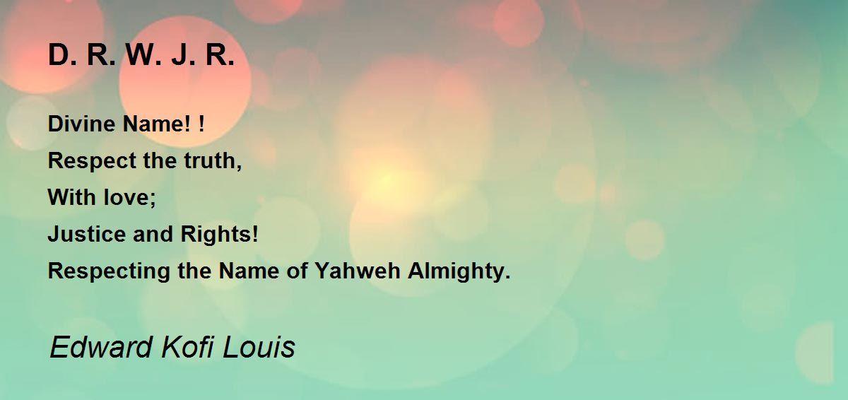 Divine Name! ! Respect the truth, With love; Justice and Rights! Respecting the Name of Yahweh Almighty.