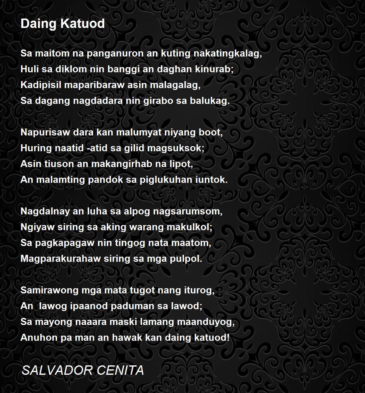 Sa maitom na panganuron an kuting nakatingkalag,