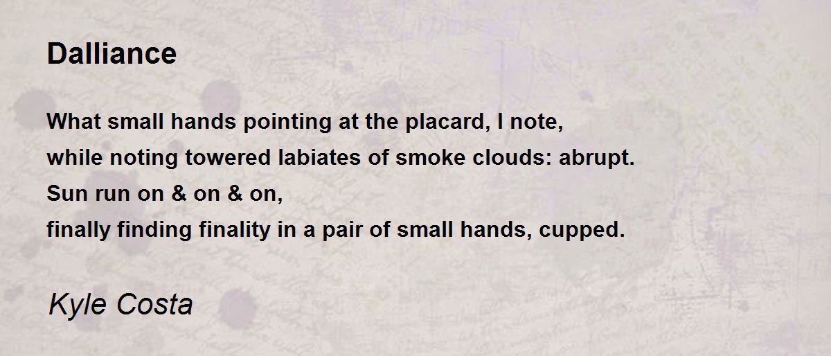 re the title: 'dalliance dăl′ē-əns noun Casual romantic or sexual activity. A casual or brief romantic or sexual relationship. A brief involvement or interest in something.' It's an 'interesting-but-not-clear, for me, poem'. Thanks for sharing. : ) Welcome 'New Poet' to PH. bri