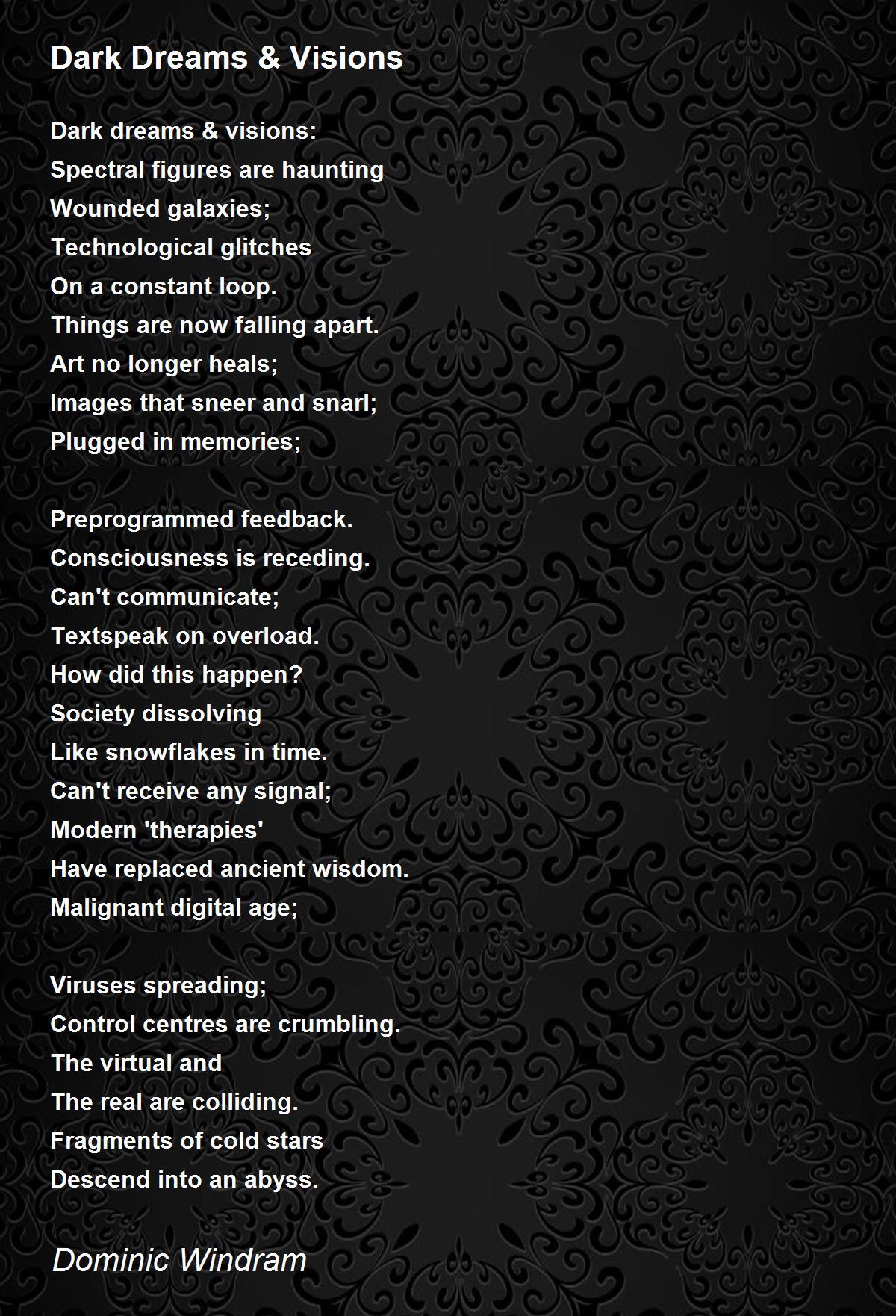 Very dark, very dystopian. A powerful piece that never slows, it's wrath just builds. What are the answers to today's self inflicted ills, one cannot simply answer that. For are we already over the tipping point, that ominous point of no return. Legions of questions and never enough answers. That's life. Thank you Dominic for your hard hitter and reality bites poem. Take care.