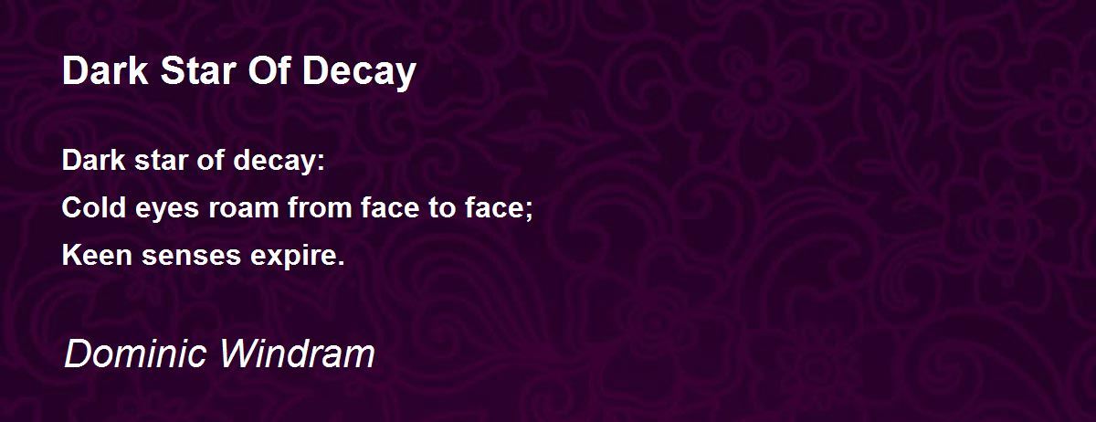 Dark star of decay: Cold eyes roam from face to face; Keen senses expire.