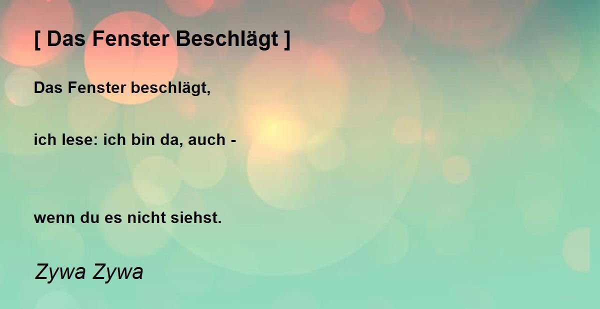 Das Fenster beschlägt, ich lese: ich bin da, auch - wenn du es nicht siehst.
