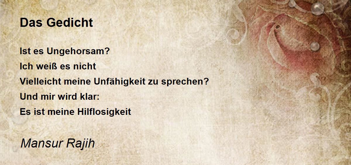 Ist es Ungehorsam? Ich weiß es nicht Vielleicht meine Unfähigkeit zu sprechen? Und mir wird klar: Es ist meine Hilflosigkeit