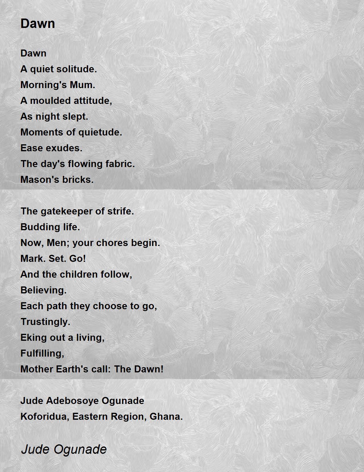 Dawn Poem by Jude Ogunade