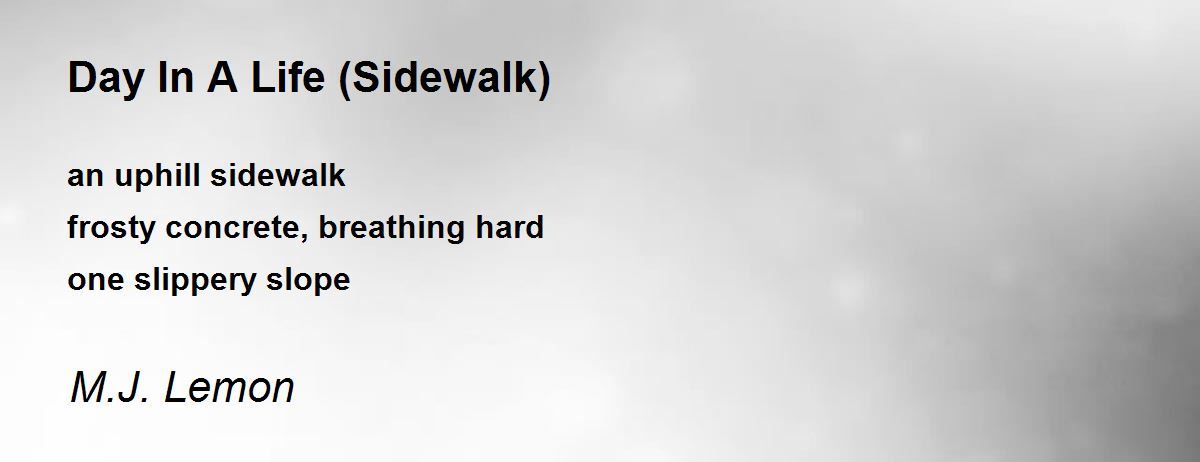an uphill sidewalk frosty concrete, breathing hard one slippery slope