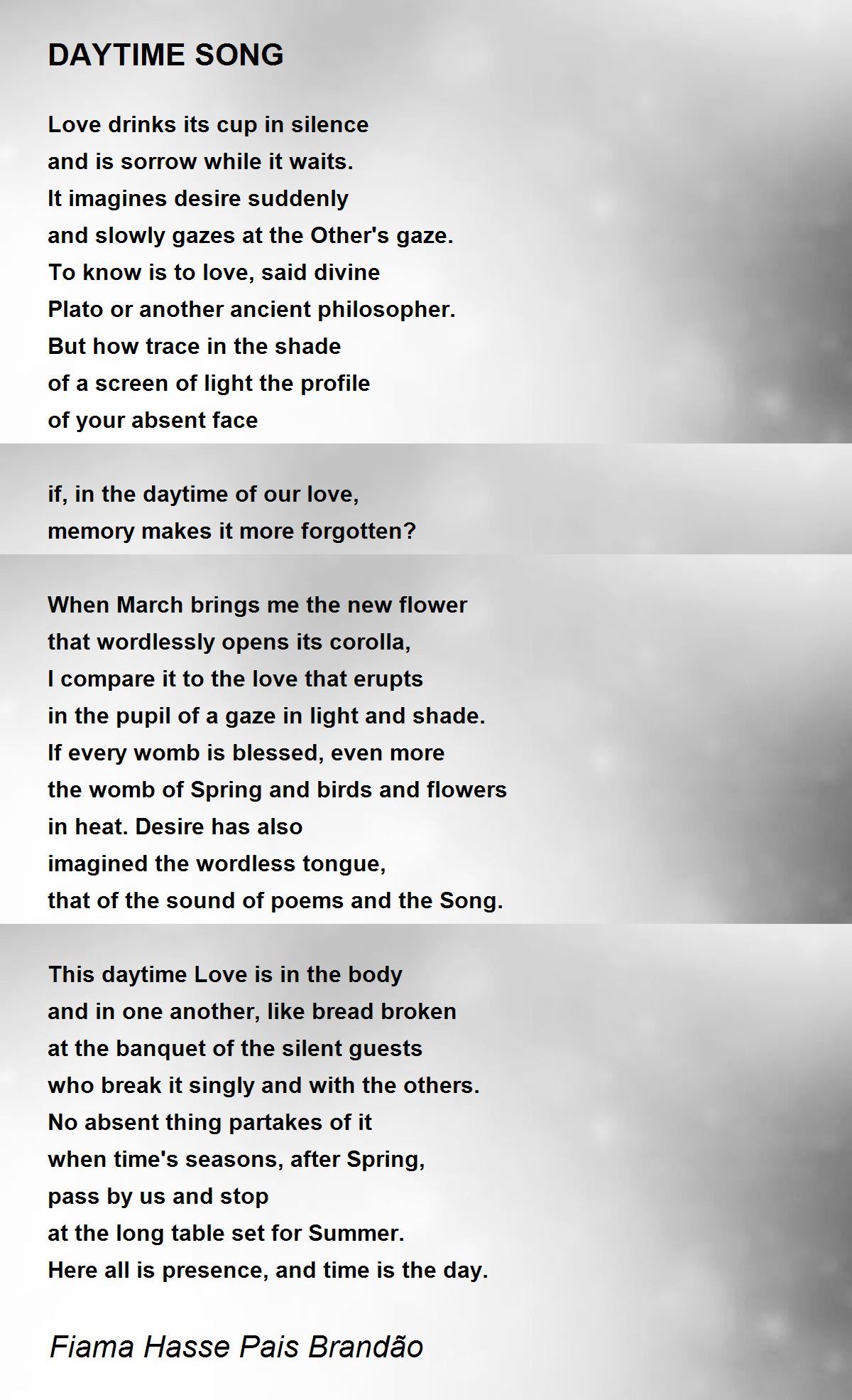 Love drinks its cup in silence