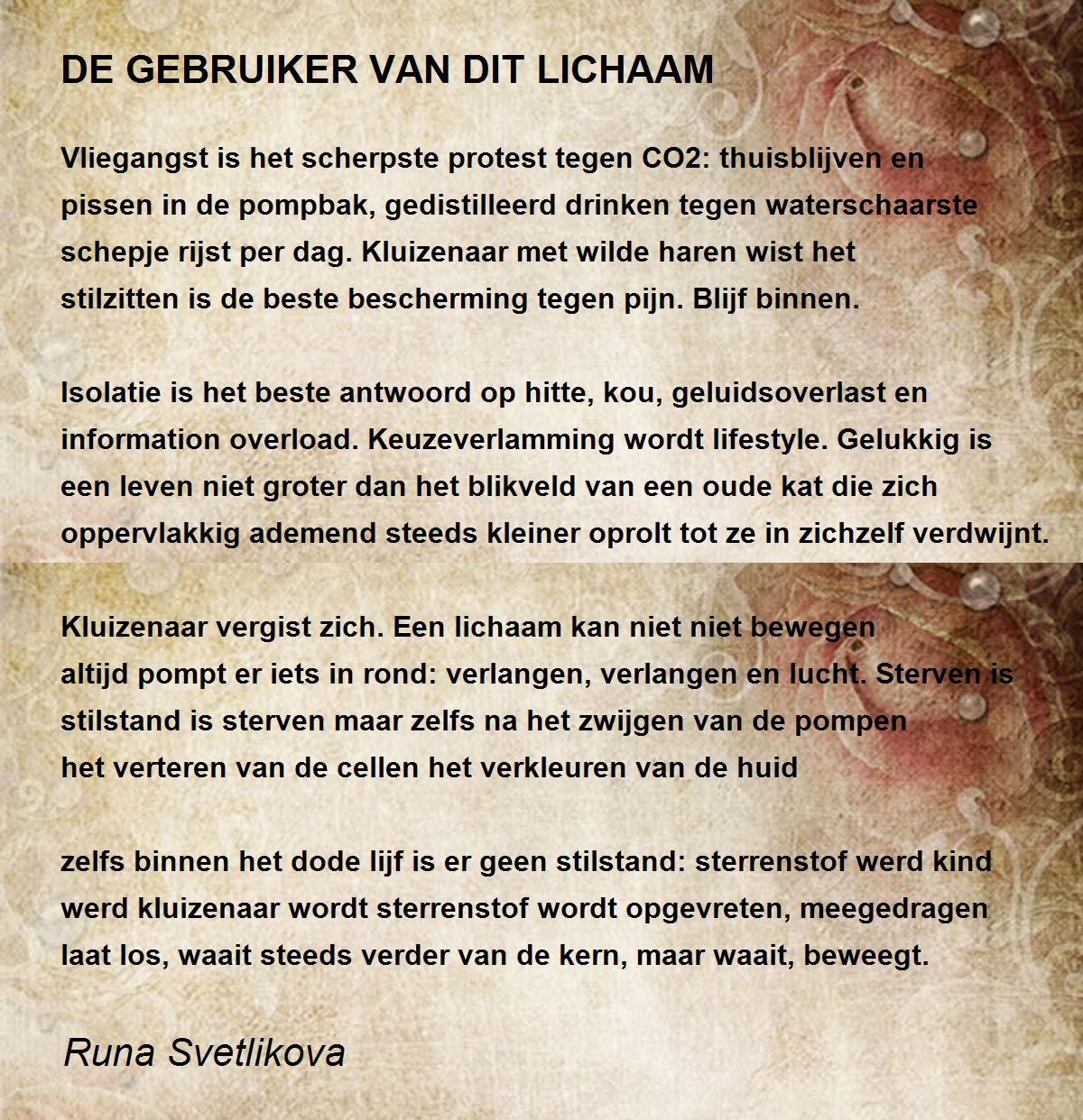 altijd pompt er iets in rond: verlangen, verlangen en lucht. Sterven is