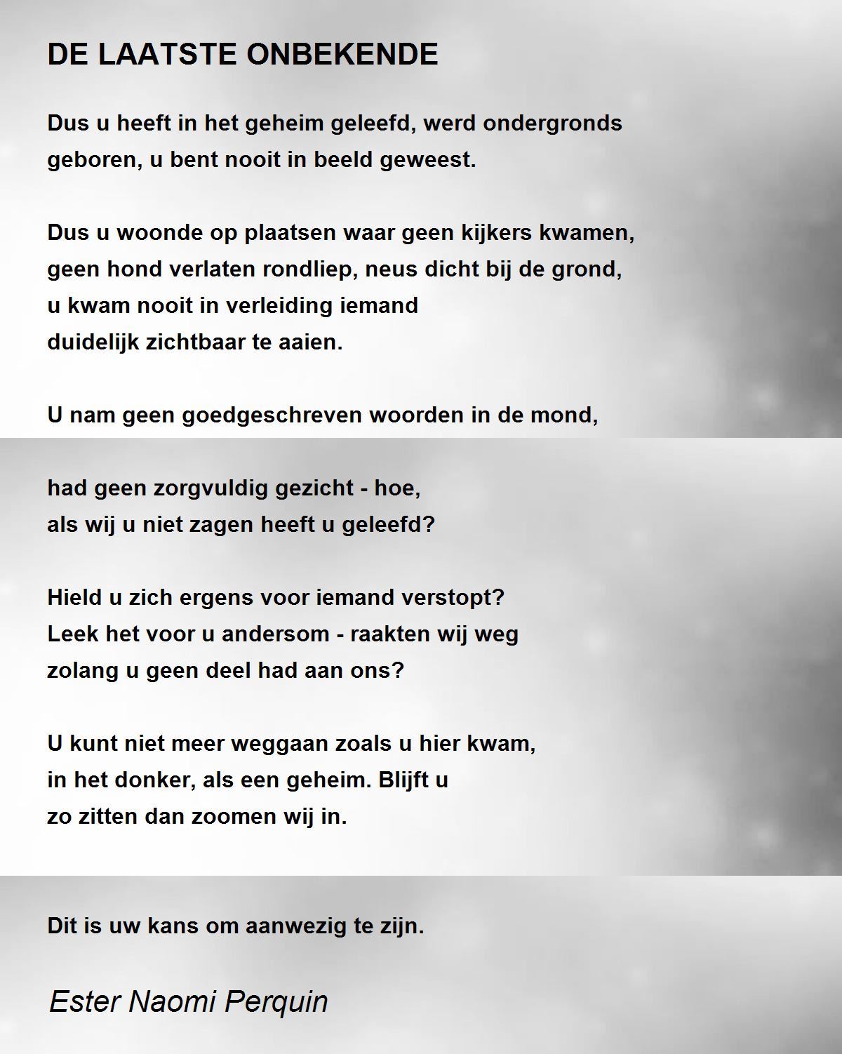 geboren, u bent nooit in beeld geweest.