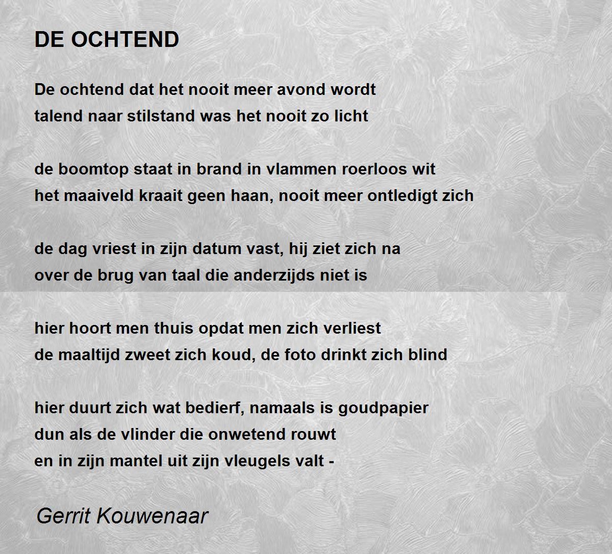 de dag vriest in zijn datum vast, hij ziet zich na