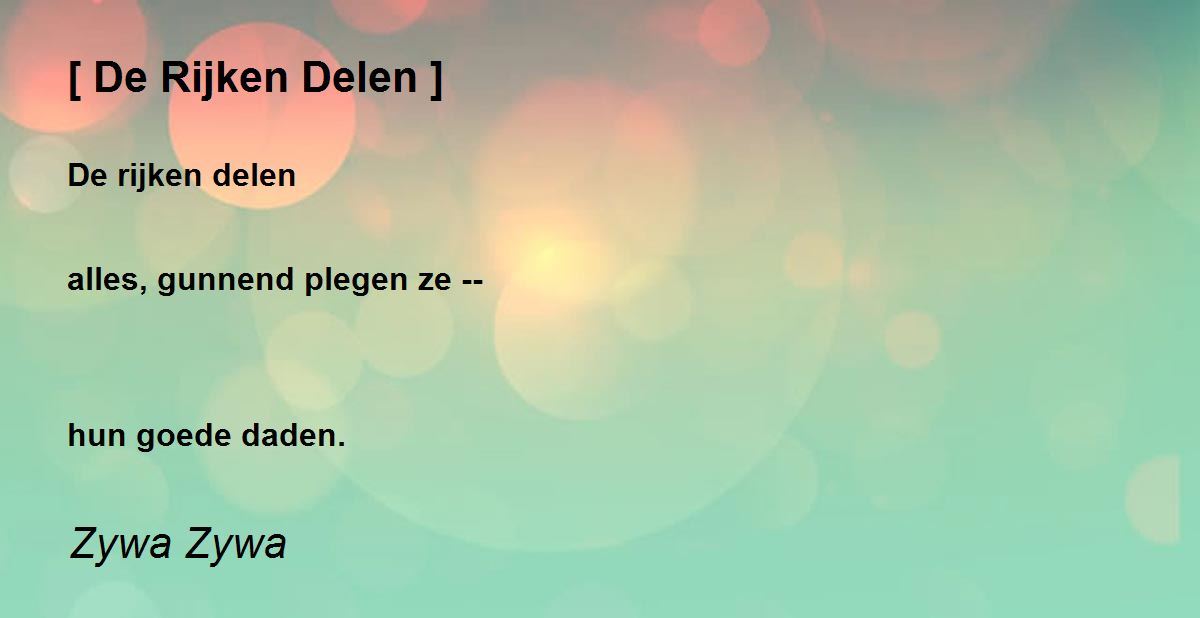 De rijken delen alles, gunnend plegen ze -- hun goede daden.