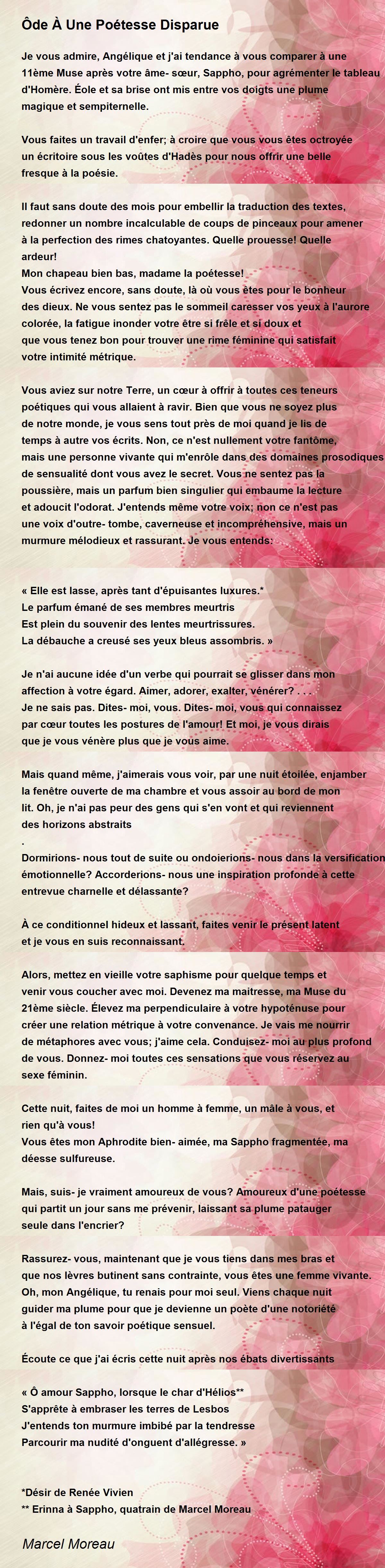 ** Erinna à Sappho, quatrain de Marcel Moreau