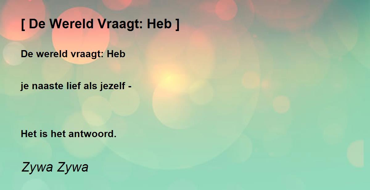 De wereld vraagt: Heb je naaste lief als jezelf - Het is het antwoord.