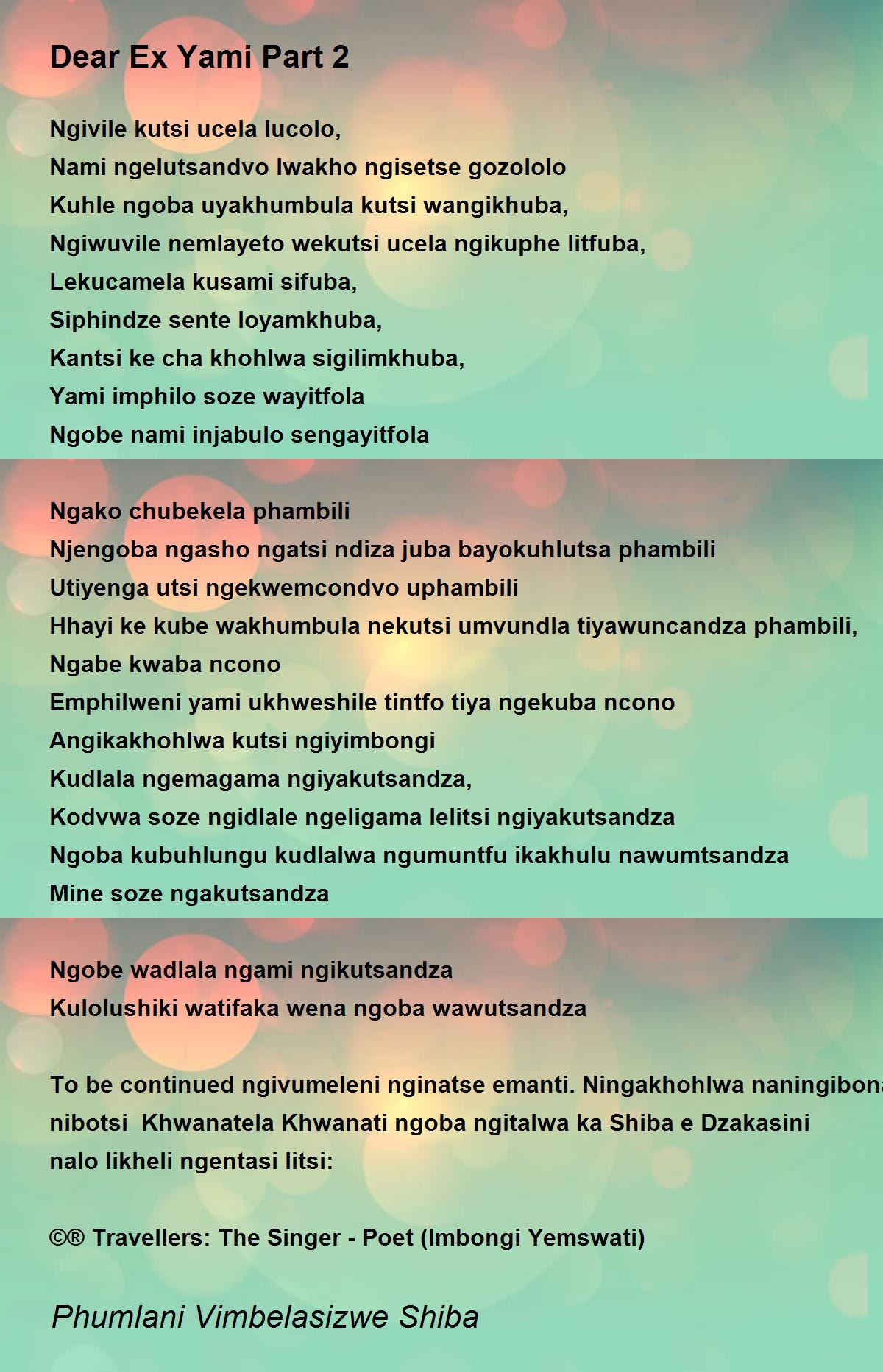 To be continued ngivumeleni nginatse emanti. Ningakhohlwa naningibona nibotsi Khwanatela Khwanati ngoba ngitalwa ka Shiba e Dzakasini nalo likheli ngentasi litsi: