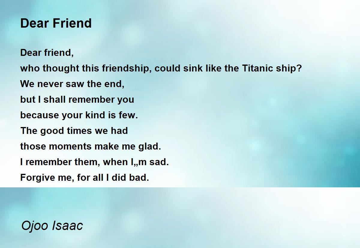 Dear friend,
