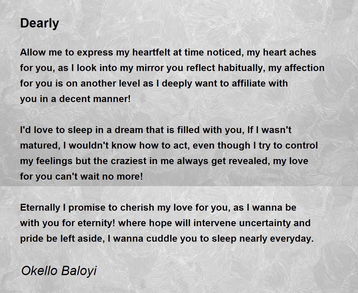 Allow me to express my heartfelt at time noticed, my heart aches for you, as I look into my mirror you reflect habitually, my affection for you is on another level as I deeply want to affiliate with you in a decent manner!
