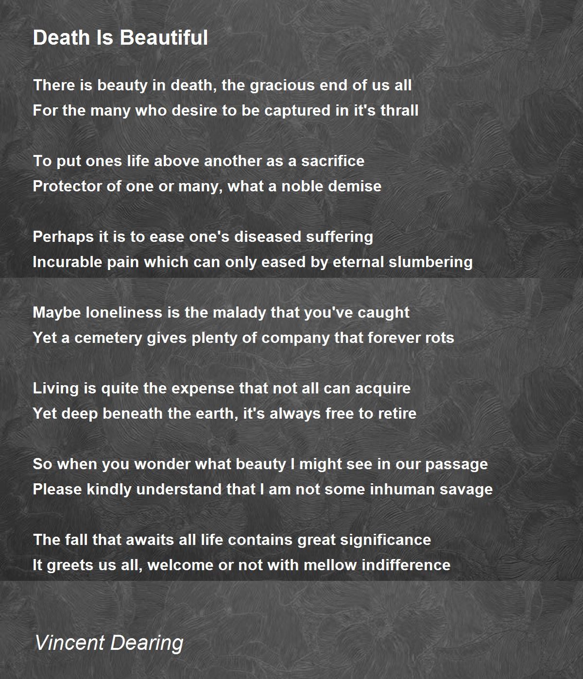 There is beauty in death, the gracious end of us all