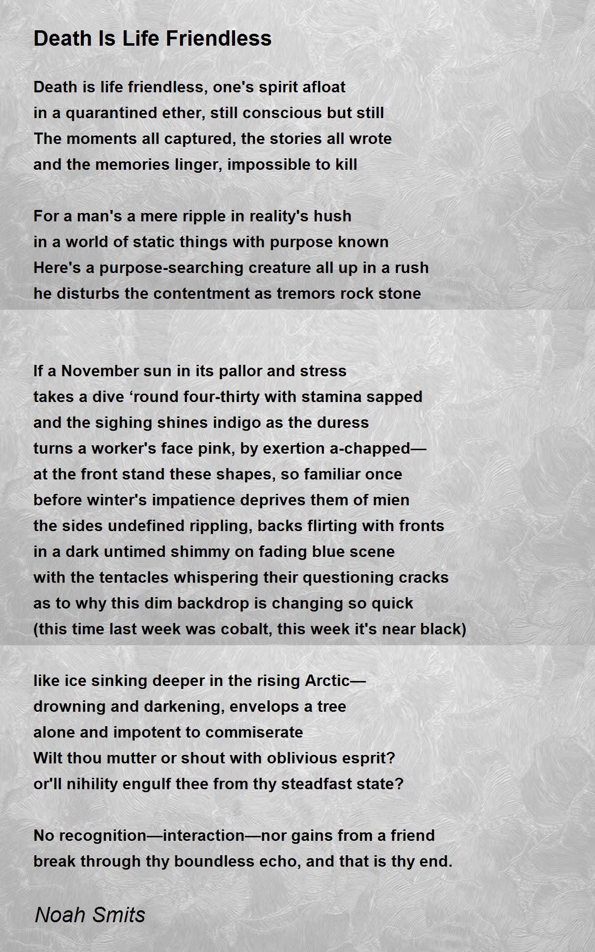 Death is life friendless, one's spirit afloat
