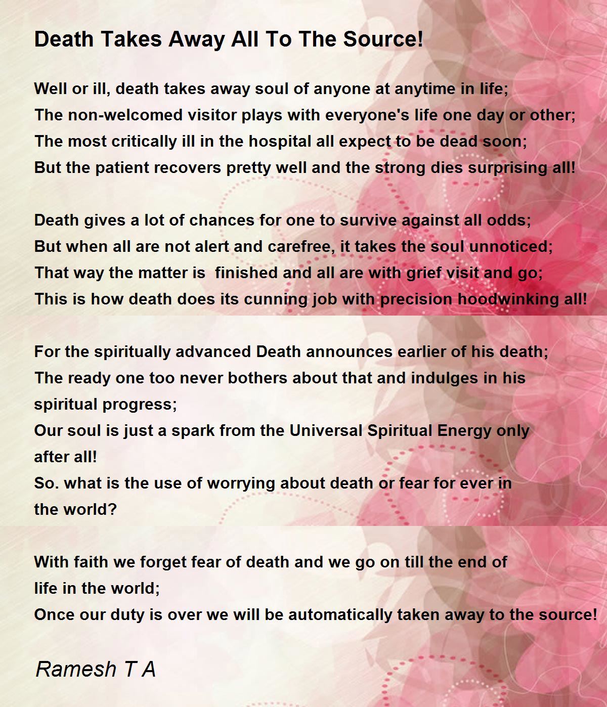 With faith we forget fear of death and we go on till the end of life in the world; Once our duty is over we will be automatically taken away to the source!