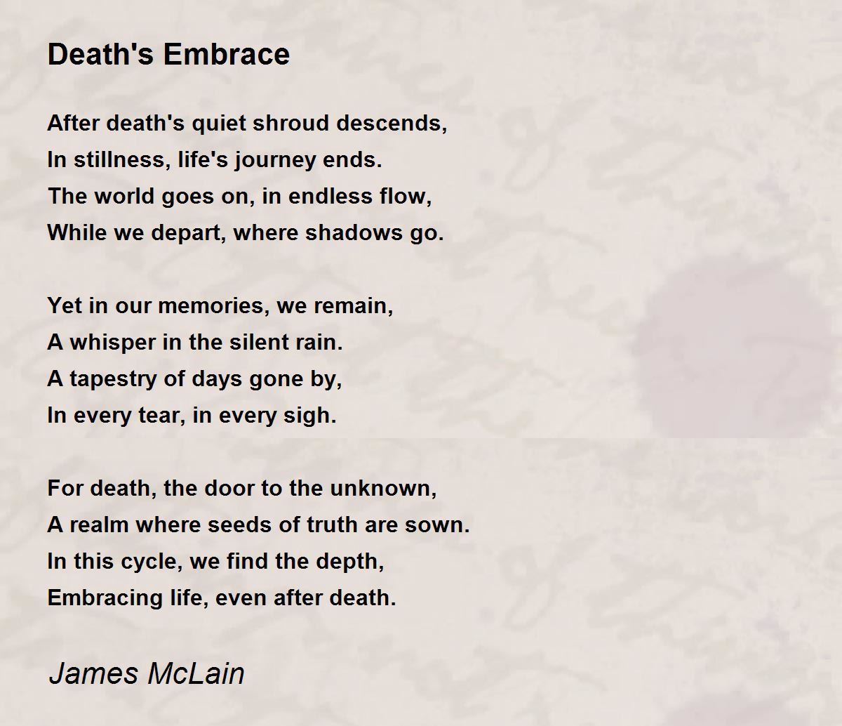 After death's quiet shroud descends,