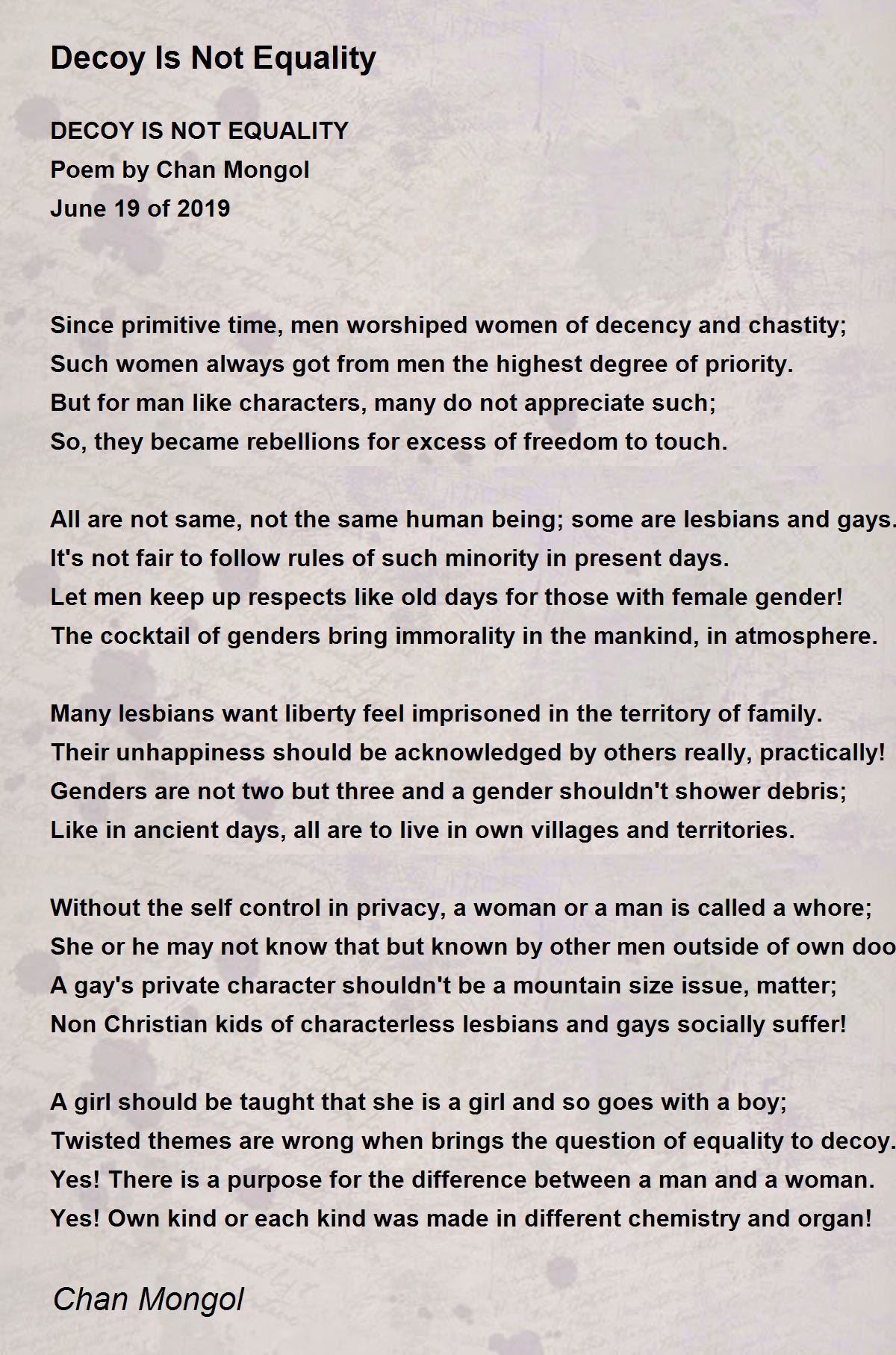Twisted themes are wrong when brings the question of equality to decoy.