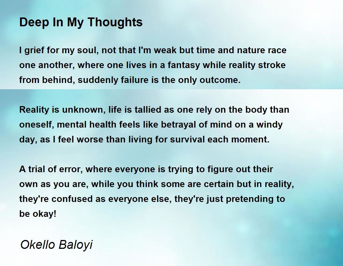 Reality is unknown, life is tallied as one rely on the body than oneself, mental health feels like betrayal of mind on a windy day, as I feel worse than living for survival each moment.