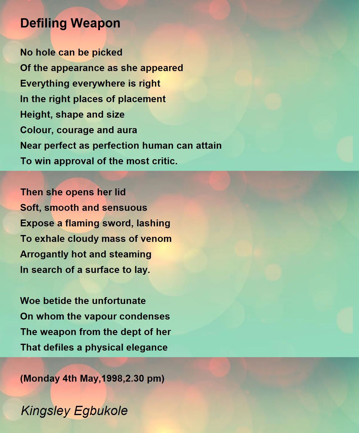 she opens her lid Soft, smooth ans sensuous Expose a flaming sword, lashing To exhale cloudy mass of venom. experiences in relationship. a fine poem. tony