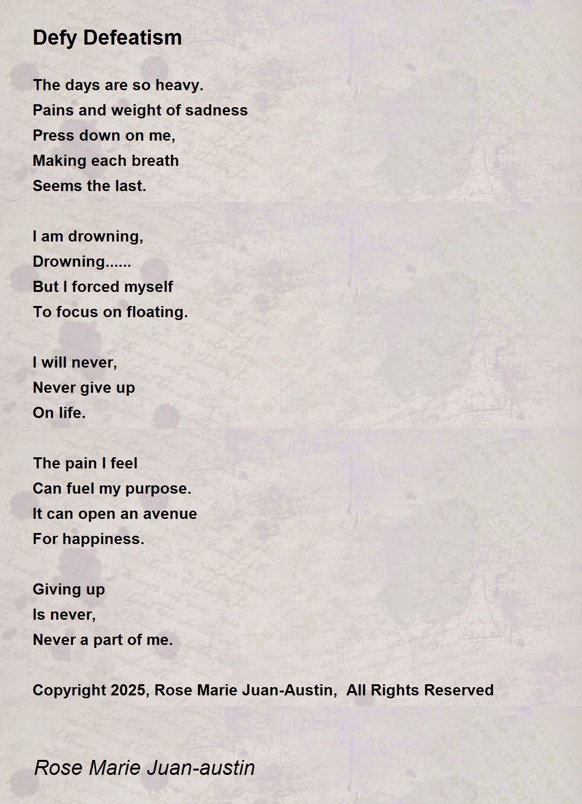 Copyright 2025, Rose Marie Juan-Austin, All Rights Reserved