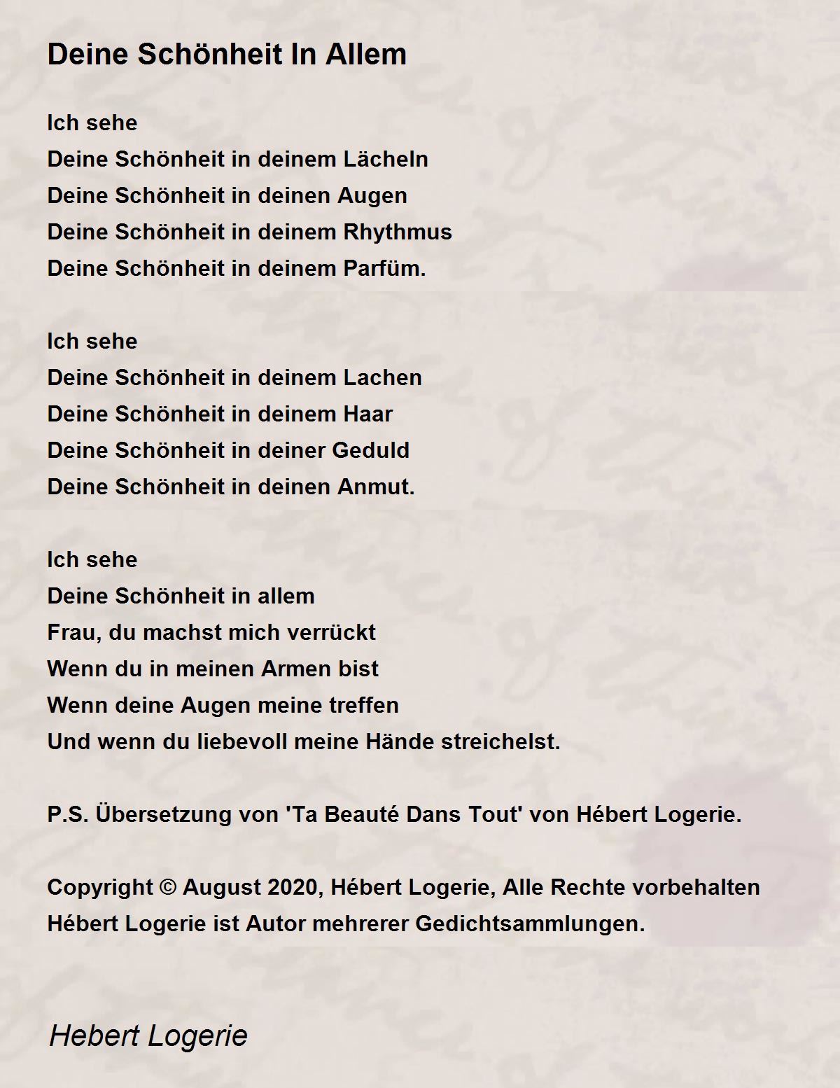 P.S. Übersetzung von 'Ta Beauté Dans Tout' von Hébert Logerie.