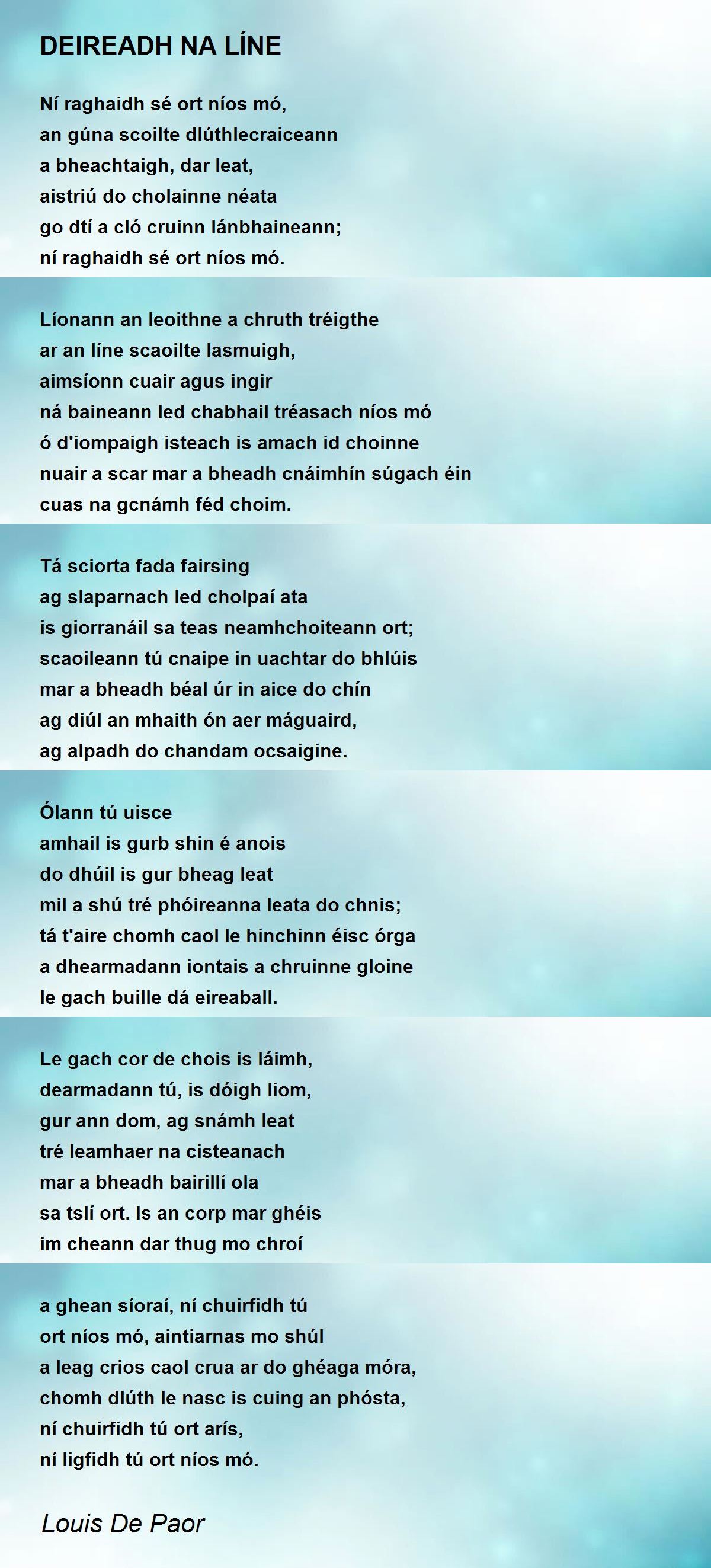 mil a shú tré phóireanna leata do chnis;
