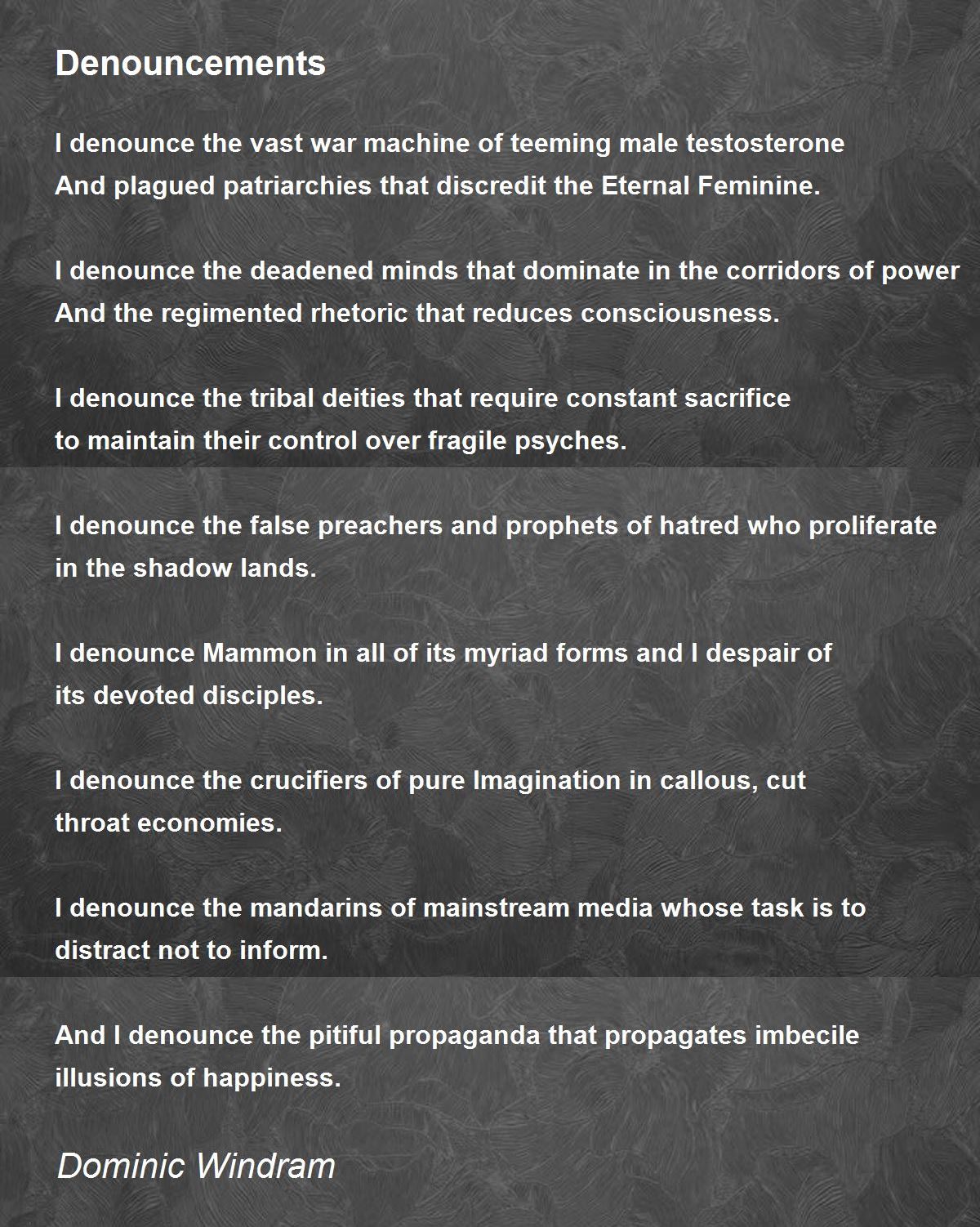 I denounce the deadened minds that dominate in the corridors of power