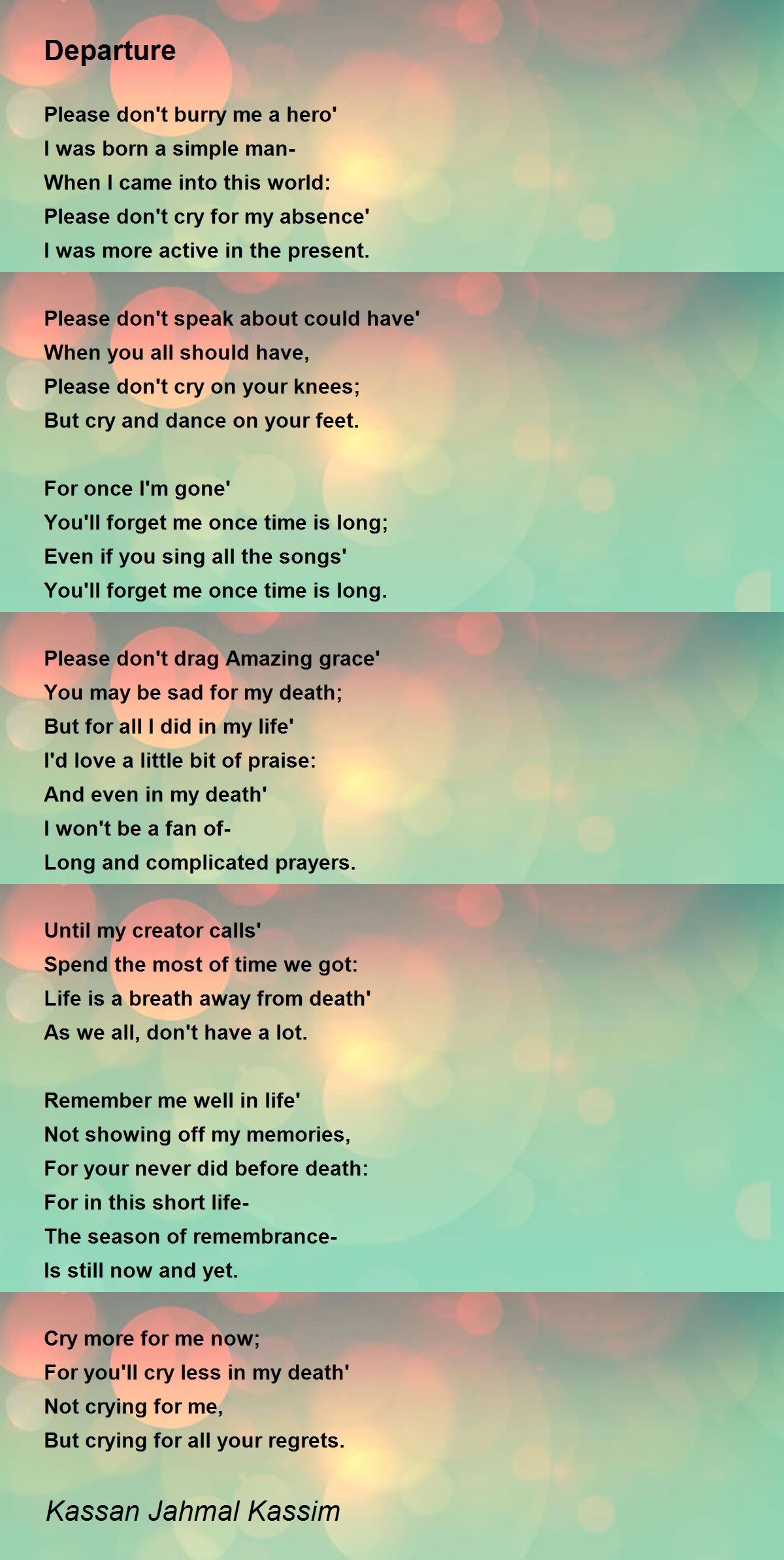 Please don't cry for my absence'