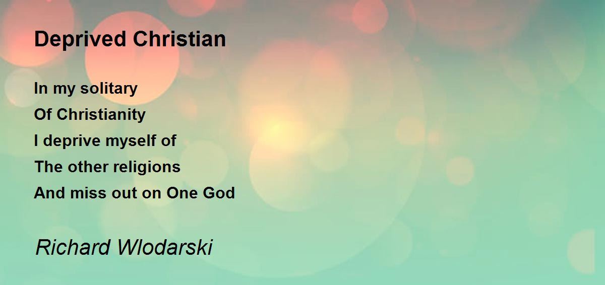 In my solitary Of Christianity I deprive myself of The other religions And miss out on One God